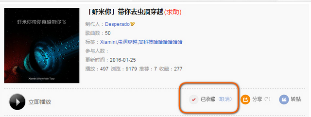 2. 打卡获取虫洞穿越门票 @ http://www.xiami.com/collect/552436
