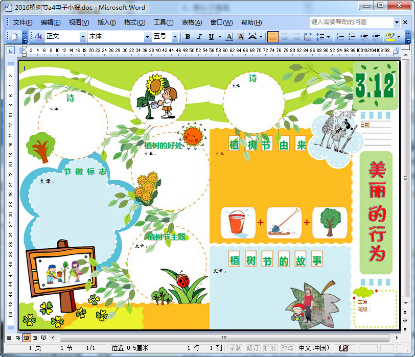 3月12日就是植树节了,各位小朋友们在这一天都已经上学了,在学校里面,老师会要求小朋友制作出精美的电子小报,可以来借鉴一下这份2016植树节a4电子小报,彩色空白模板,是doc格式的,可以自己进行编辑,写上自己想写的内容,然后打印出来哦,也可以打印出来后,自己在上面手写植树节相关的知识哦。