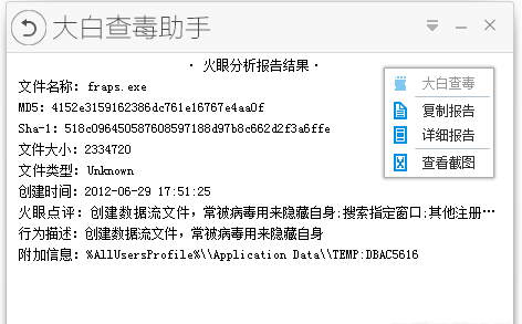 其实你们在论坛上都遇到过,很多帖子中查毒链接总是传来传去最后传的不见了,这样总让用户无法了解哪些程序是不是真正的安全,针对这样的情况,小编准备大白查毒助手,帮助分析程序的行为举止,从而判断是否有病毒啦!