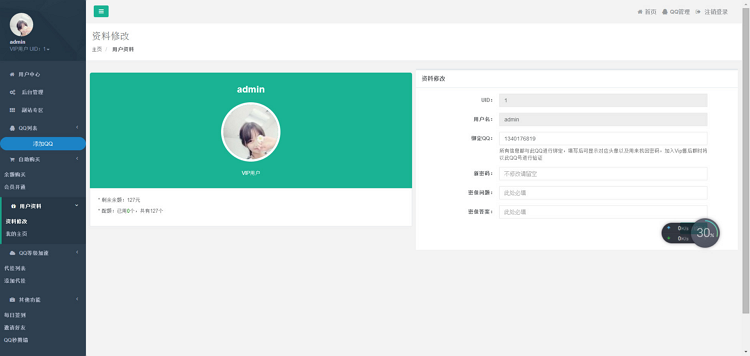 这是个人用户界面,可以看余额、秒赞、代挂等信息