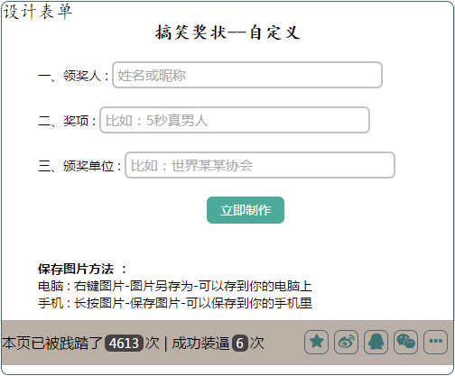 轻松一键制作生成各类型搞笑奖状,不搞笑不够装逼!软件使用简单,内置多种模板,还能够完美自定义各种文字内容,绝对够你装得一首好逼...欢迎下载!