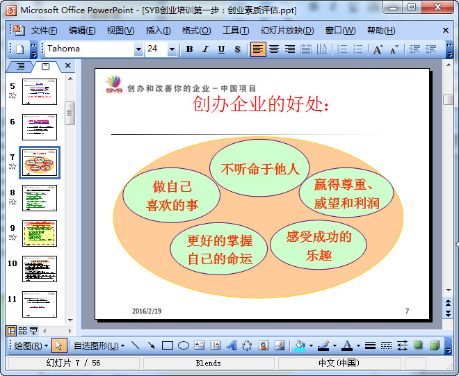 syb创业,创造属于你的企业,如果你选择了创业,可以来看看这份SYB创业培训ppt课件,告诉你创业第一步,还有一些创业技巧,看看你的创业素质,创业可以不用受制于人,可以最大程度地发挥自己的主观能动性!