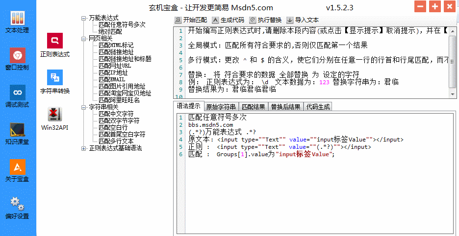 是不是还在为用C#写WIN32API找不到资料而烦恼?不会正则表达式却要使用?别担心,这些都不是问题. 玄机宝盒来帮你!它是一款C#开发辅助工具,它是一款让你偷懒到极致的帮手,能够让开发更简易!