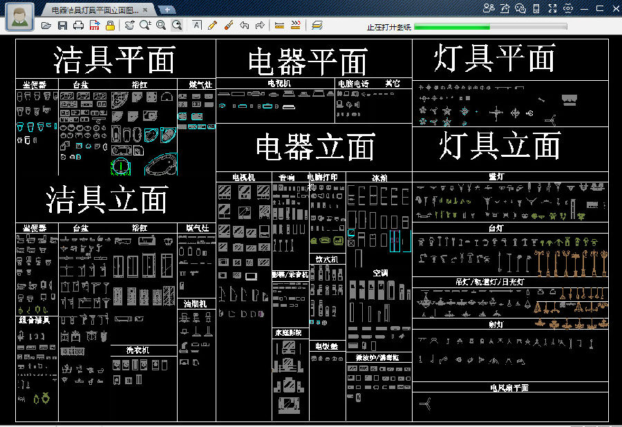 电器洁具灯具平面立面cad图纸预览