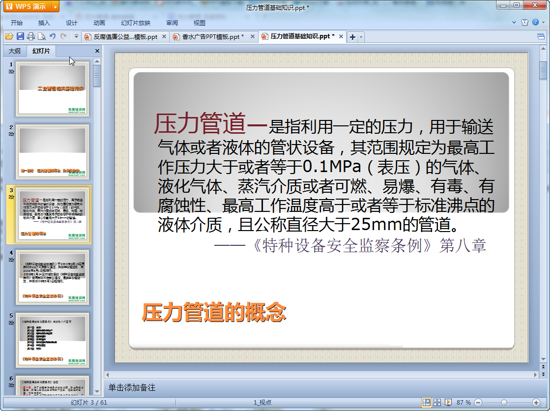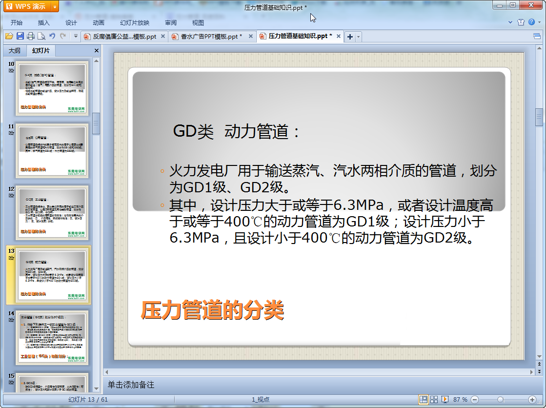 这里我们东坡下载为大家带来的一篇压力管道基础知识ppt,详细的为大家讲解了压力管道相应知识,对这方面的学习感兴趣的朋友们可以来看看我们的这篇精美的压力管道基础知识ppt!对大家的学习会有很大的帮助!