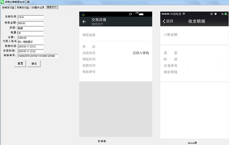 微商必备截图生成工具集成了多个必备的截图软件,支付宝截图、QQ/微信聊天记录截图等,满足你基本的作图需求!软件是免费的,下载解压后直接可以用,唯一的缺点就是不能调窗口模式,只能在全屏状态下使用!