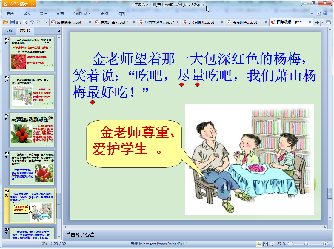 这是一篇语文S版四年级下册语文萧山杨梅教学课件,课件共有31页,有需要提前准备这篇课文教学课件的老师们可以来我们东坡免费的下载这篇萧山杨梅ppt!