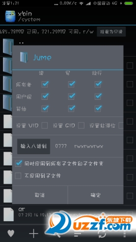 第二步,安装RootExplorer(RE管理器)。给予root权限。打开管理器,将system文件夹下的xbin文件夹权限加满0777