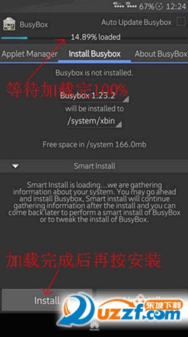 第三步,安装busybox,安装BusyBox_Pro_v28后打开等待它加载完成再点击安装,不要一打开就安装