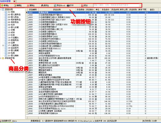 在货品信息窗口中左边是货品类别,右边列表中是该类别对应的货品。在某一类别上点击鼠标右键,可以新增类别,重命名和删除类别。