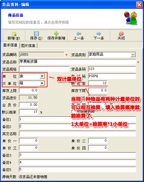 在货品信息列表中点击“新增”按钮打开增加货品界面如图: