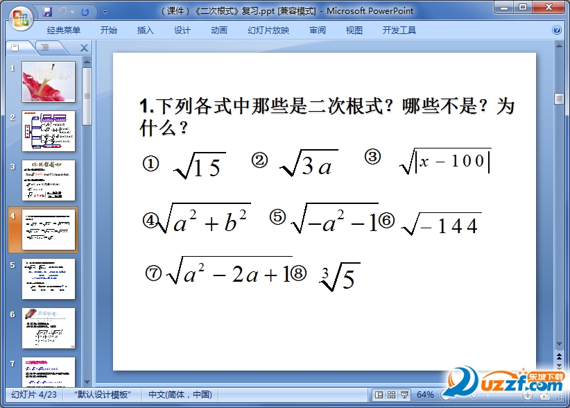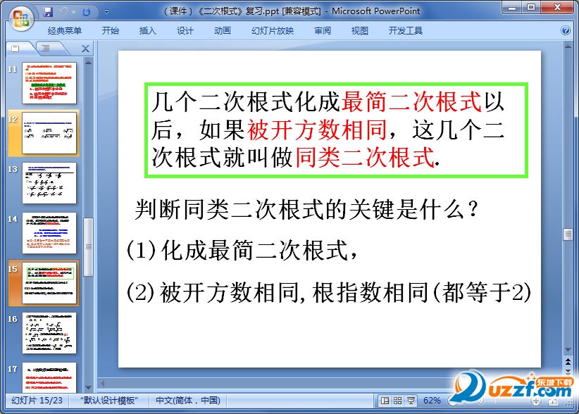 二次根式这章内容是熟练掌握二次根式的运算,教学的关键是理解二次根式的性质,东坡小编整理了第十六章二次根式复习课件,需要的老师朋友们快来下载吧。