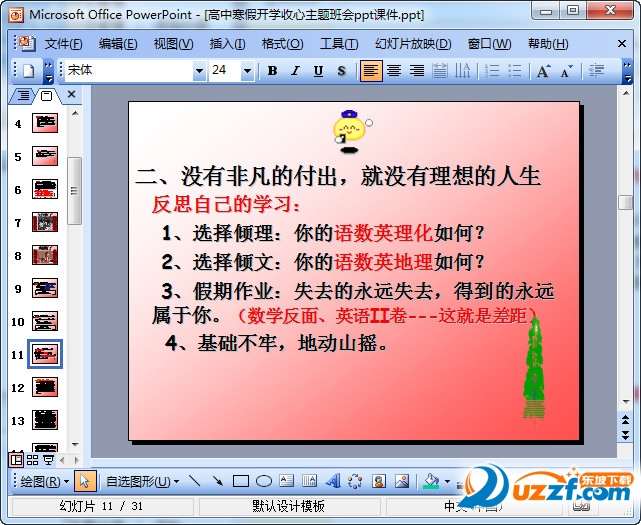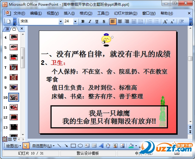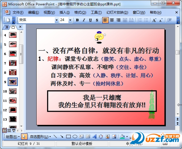 开学了,年已经过去了,大家玩好了吗?要上学了,大家要把心给收回来哦,投入到学习当中,努力奋斗!这份高中寒假开学收心主题班会ppt课件,一份完美的ppt课件,总共有31页。点击相应的下载地址就能够免费获得它了。