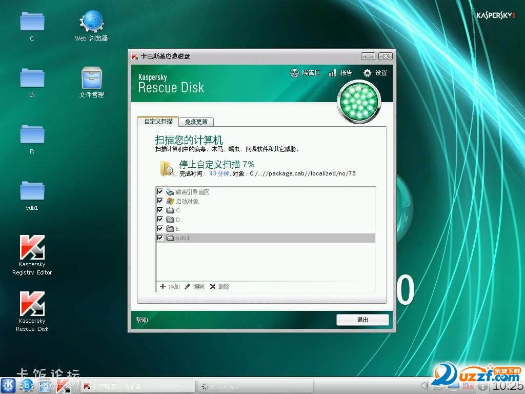 如图:就是卡巴斯基应急磁盘,进入此系统后,你还可以进行病毒扫描,彻底隔绝病毒干扰