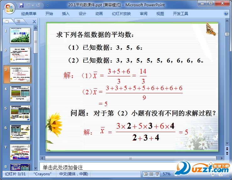 平均数这节内容是需要理解平均数的意义,能计算中位数、众数、加权平均数,理解“权”反映数据的相对“重要程度”,体会“权”的作用,使学生更全面的理解加权平均数,正确运用加权平均数解决实际问题。