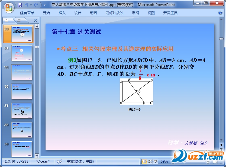 新人教版八年级数学下册总复习课件是一份详细完整的复习课件,共有233页,针对每一章节都有训练测试,过关测试,有需要的朋友可以进行免费下载。