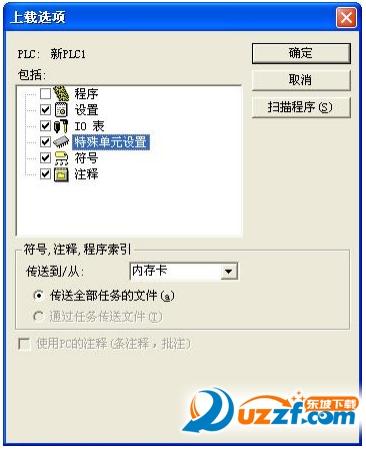 2、内存备份:解密前请先备份数据,如下图所示,除了程序选项外,全部打勾,上载即可,除了这几项,还要再备份内存数据,下面请点击图中的内存按钮