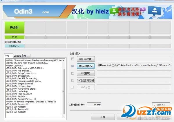 打开odin文件(ap选项打勾)选对应的线刷root,点开始等手机重启。如无限重启请双清(之前自己备份好资料)