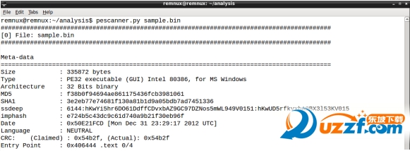 RSDS字符串的出现让我们确信dddd.pdb是与调试信息相关的字符串。接下来,我们需要计算.text区块的哈希值,为此我们需要使用hiddenillusion版本的pescanner.py,并把样本的名称作为参数。