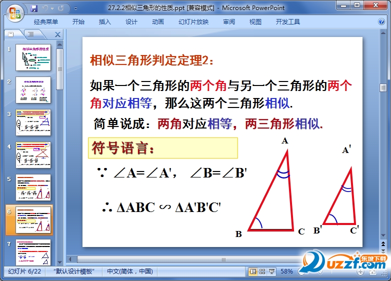 相似三角形的性质是重点课程,是在了解相似三角形基本性质和判定方法的基础上,进一步研究相似三角形的特性,以完成对相似三角形的全面研究,东坡小编这里分享27.2.2相似三角形的性质ppt课件,点击下面的地址即可进行免费下载。