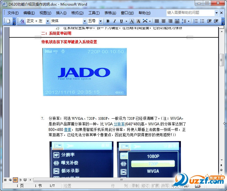 捷渡(JADO)D620行车记录仪参数