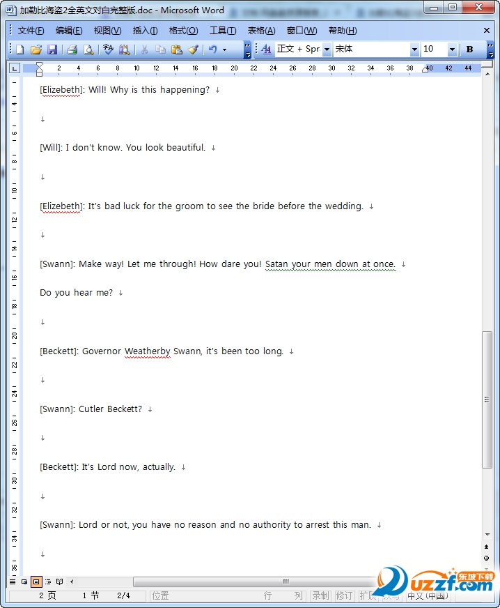 这里是我们东坡下载免费的为大家带来的一篇纯英文的加勒比海盗2剧本台词,内容比较完整完整,适合各种话剧小品中使用,有需要的可以直接点击下面的地址免费的下载使用!