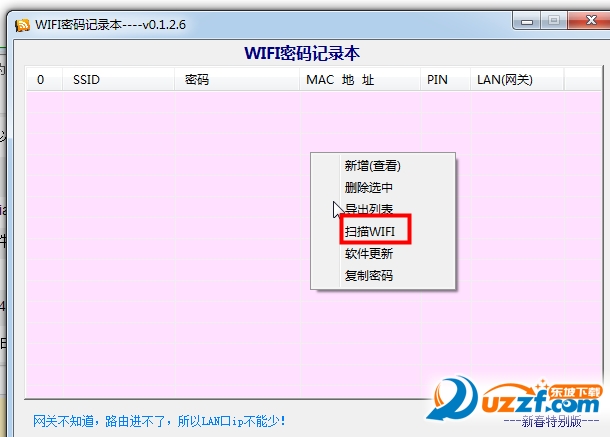 1、打开软件后右键扫描WiFiwww.uzzf.com欢迎各位同行复制