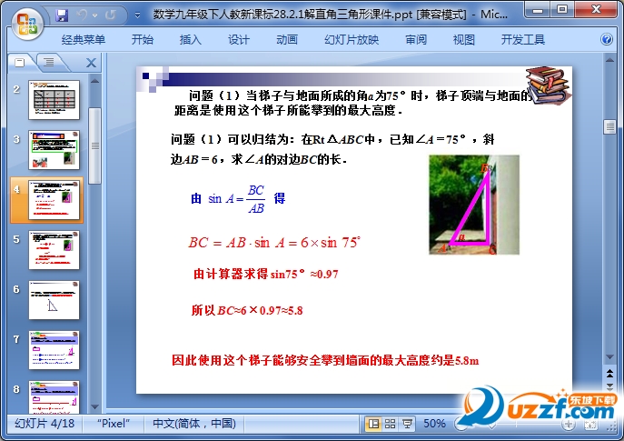 问题(1)当梯子与地面所成的角a为75°时,梯子顶端与地面的距离是使用这个梯子所能攀到的最大高度.