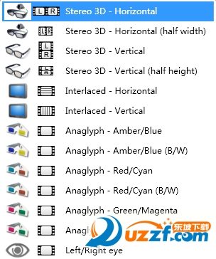 支持多种3D模式,支持3D眼睛,如图: