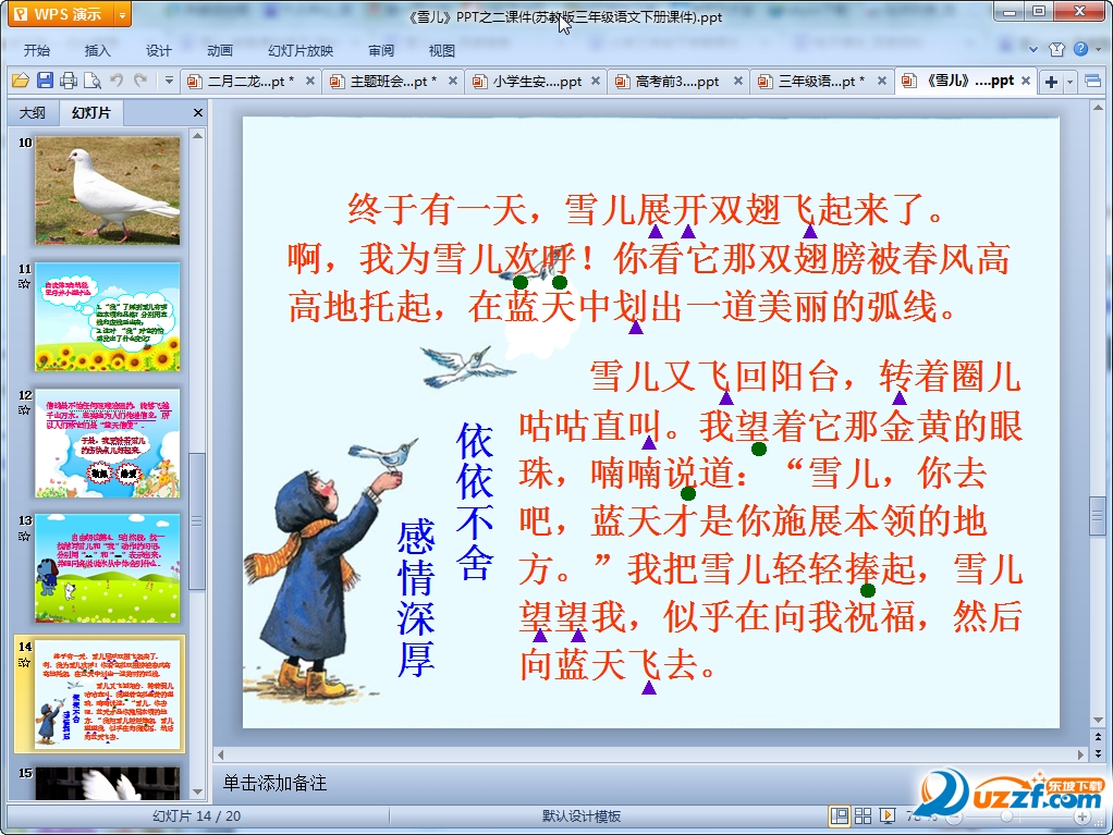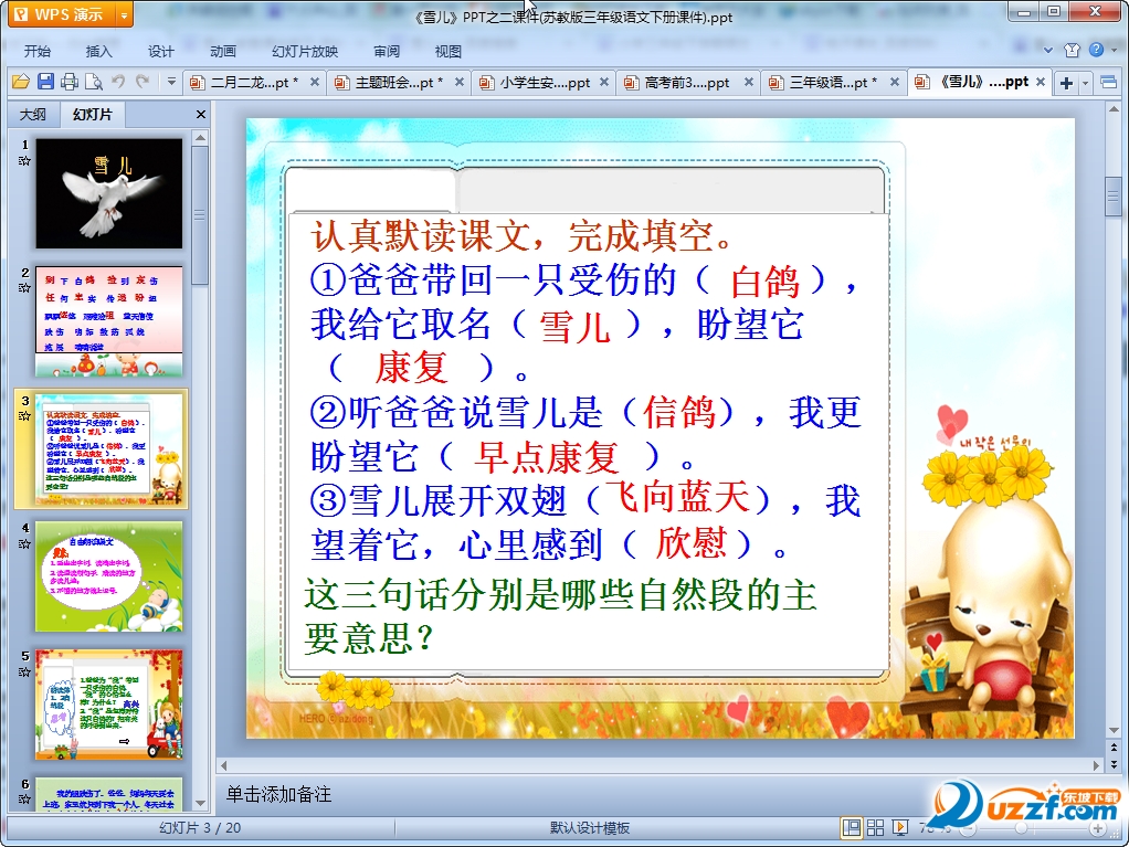 这是我们东坡下载为大家带来的一篇苏教版三年级语文雪儿ppt课件,课件制作十分精美内容比较丰富,对课文中的重难点讲解的十分完整详细,有需要这篇课文课件的老师们可以来我们这免费的下载使用,精美的内容肯定不会让大家失望!