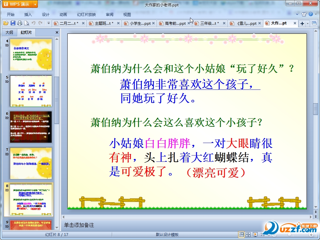 这里给大家带来的是一篇共17页的大作家的小老师ppt课件,作品取自苏教版小学三年级语文,内容制作十分精美,喜欢使用ppt教学的老师们就不要错过了我们的这篇大作家的小老师ppt了,精细的制作肯定可以让老师们满意!