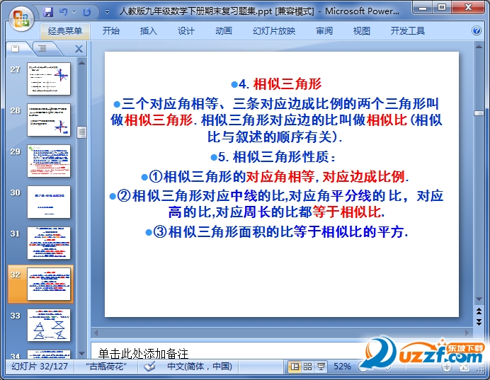 九年级的学生正面对着中考,都有着升学的压力,教学时间紧,任务重,这里小编分享人教版九年级数学下册期末复习题集ppt,对初三学期内容的总复习,点击下面的地址即可进行免费下载。