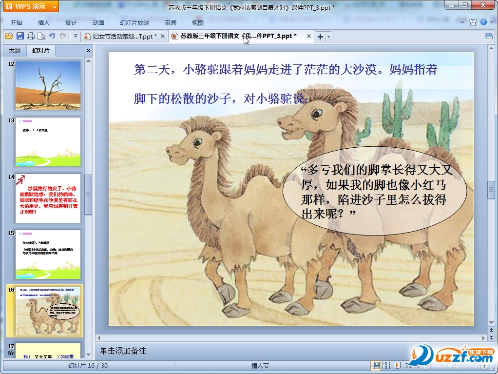 3、凭借对课文的朗读感悟,懂得骆驼的驼峰、脚掌、睫毛在沙漠里的特殊用处,树立正确的审美观点。