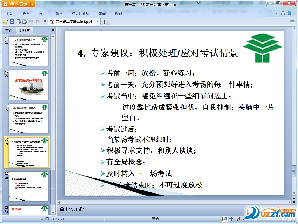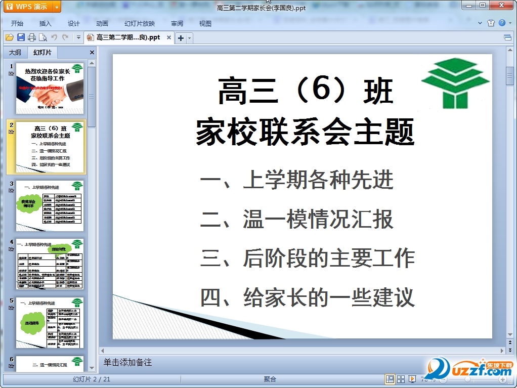 2016年高三第二学期家长会课件内容介绍