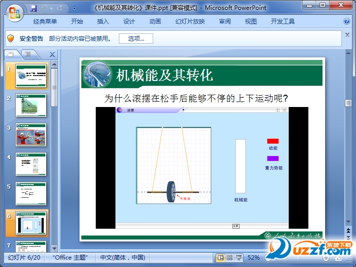 二.学生分析:学生在日常生活中经常接触到“能”,认为“能”是一种很有用的东西,对“能”很有神秘感。通过上一节“动能和势能”的学习,对“能”的概念和“能”的分类有一定的认识,知道各种机械能的概念以及各种机械能的大小跟什么因素有关。