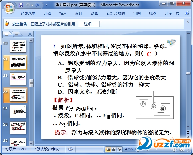 这里分享第十章浮力复习课件以及浮力复习教学反思,该复习课是对近阶段所学的浮力和物体的浮沉条件等知识进行梳理整合,在复习这些知识时,教师一定要注重基础知识的落实。