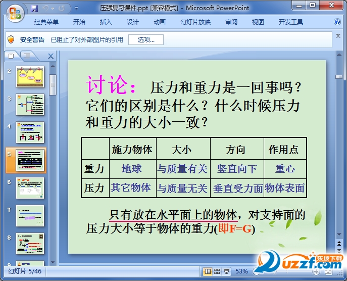 压强是初中物理非常重要的内容,在学习了压强这章节后需要总复习,东坡小编分享第九章压强复习ppt课件,把各部分知识紧紧联系在一起,需要的朋友点击下面的地址即可免费下载。