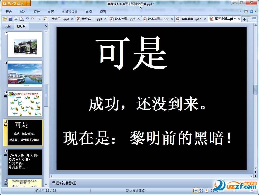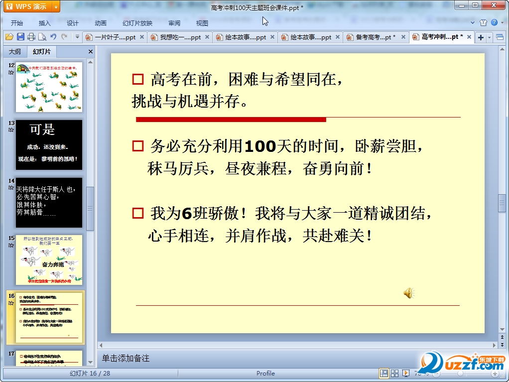 马上就是学生的一道关键的门槛高考了!这里我们小编给各位老师们准备了一篇高考冲刺100天主题班会课件,在这个高考前的100天里,给足学生们信心帮助他们以最好的心态的迎接考试,有需要的老师可以来我们东坡免费的下载使用!
