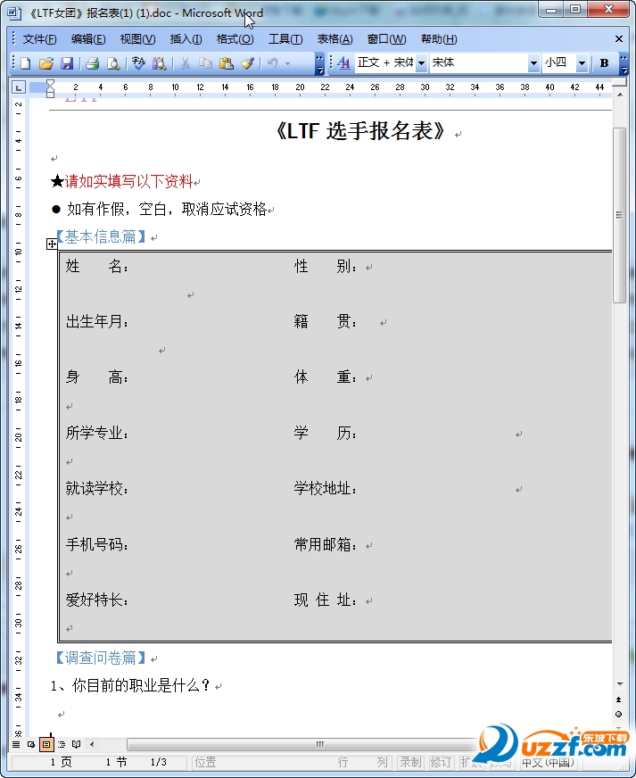 这是我们东坡下载为大家带来的一篇ltf女团报名表模板,内容完整,有需要准备参加ltf女团招募的朋友们可以来我们东坡免费的下载这篇ltf女团报名表模板!