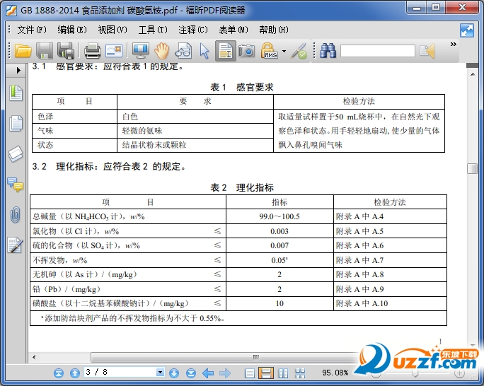 食品添加剂 碳酸氢铵GB 1888-2014内容节选