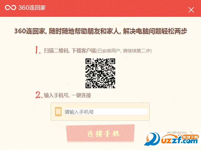 家里的父母在使用电脑的时候出现问题,你却不在家里怎么办?那么快来下载试试360为大家提供的新功能360连回家,通过手机就能够远程一键进行电脑清理和病毒查杀。