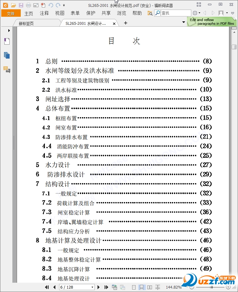 这是一篇SL265-2001水闸设计规范电子版,采用的是pdf格式内容十分高清,需要这篇书本的朋友们不需要担心看不清的问题,需要该电子版水闸设计规范pdf的朋友可以来我们东坡免费的下载使用!