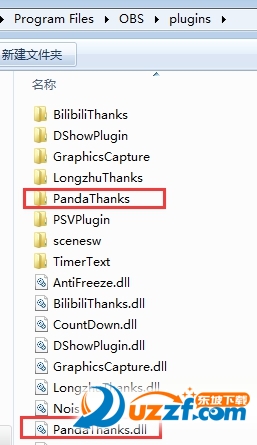 如果为64位,请将下载下来的熊猫TV答谢水友.rar解压将64位文件夹里的PandaThanks.dll文件和PandaThanks文件夹复制到Program Files的OBS的安装目录的plugins文件夹下。