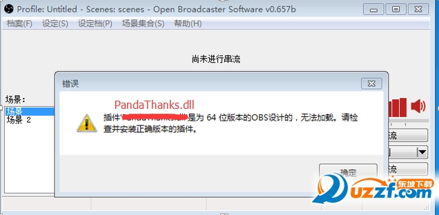(3) 插件PandaThanks.dll是为XX位版本的OBS设计的,无法加载。请检查并安装正确版本的插件