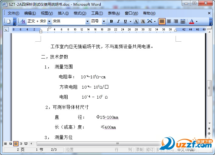 SZT-2A四探针测试仪使用说明书预览