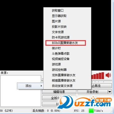 (5) 添加来源时,没有发现 “Bilibili直播答谢水友” 此项