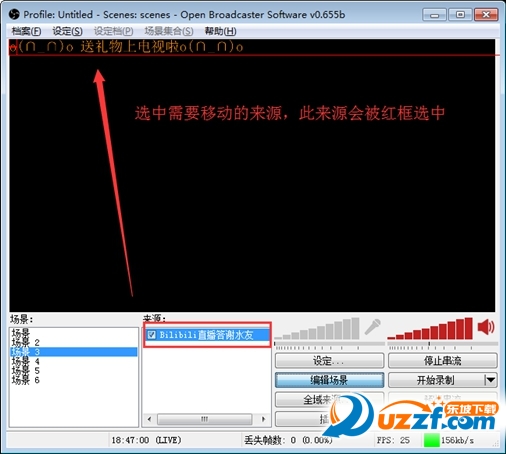 如果,选中“Bilibili直播答谢水友”来源,则“Bilibili直播答谢水友”来源就会被红框选中