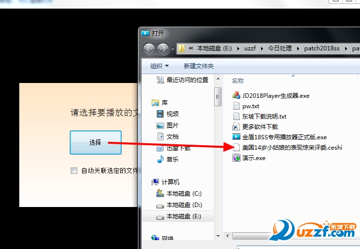 首选运行“金盾18SS专用播放器正式版.exe”,点击【选择】按钮,选择已加密的视频文件,如图:
