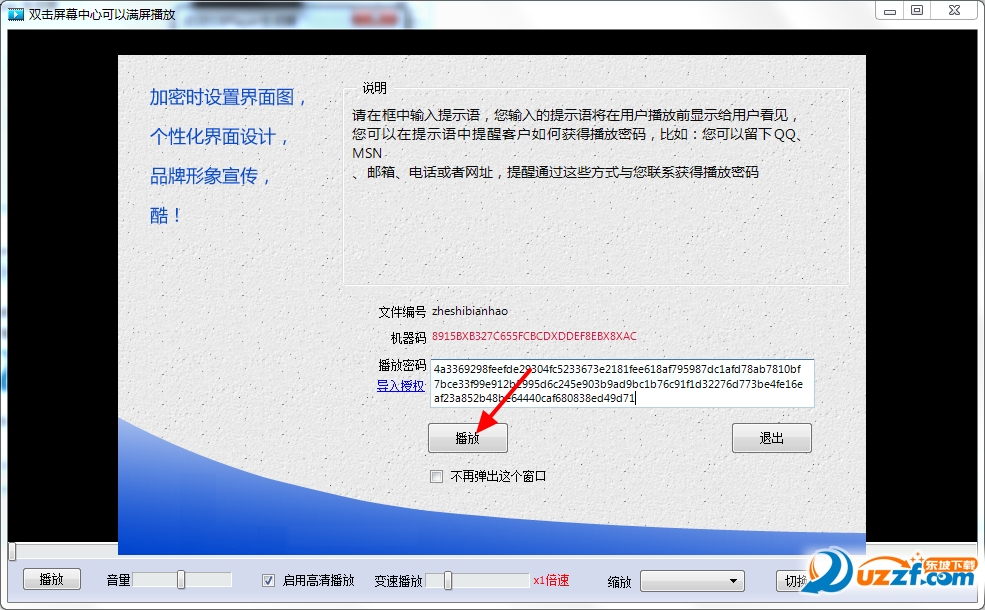 重复前面视频文件选择以及粘贴播放密码的步骤,点击【播放】按钮