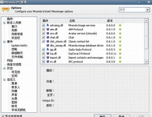 超强的插件系统让Miranda IM获得极高的扩展性,